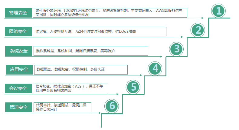 4. 6级安全策略,7层安全防护体系,更安全可靠的会议服务