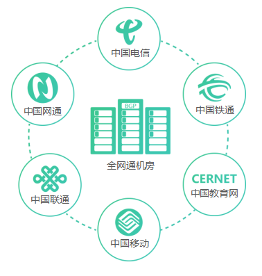 • BGP全网通机房,全网高效接入,解决南北互通问题。