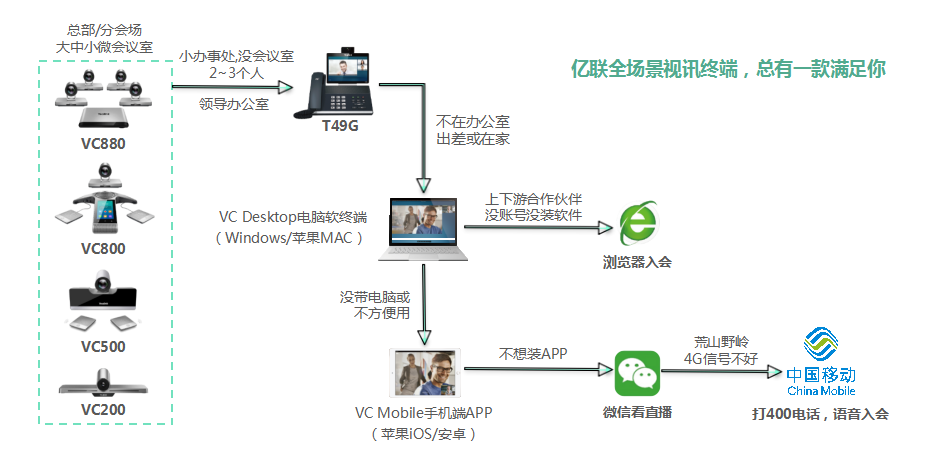 以统一通信的理念,重新定义并融合“人”、“会议室”、“会议”