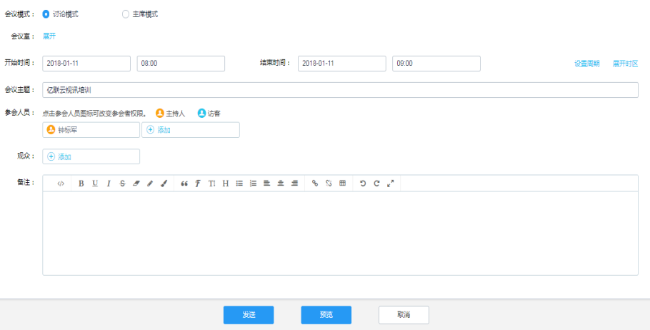 支持会议预约,让会议召集更简单