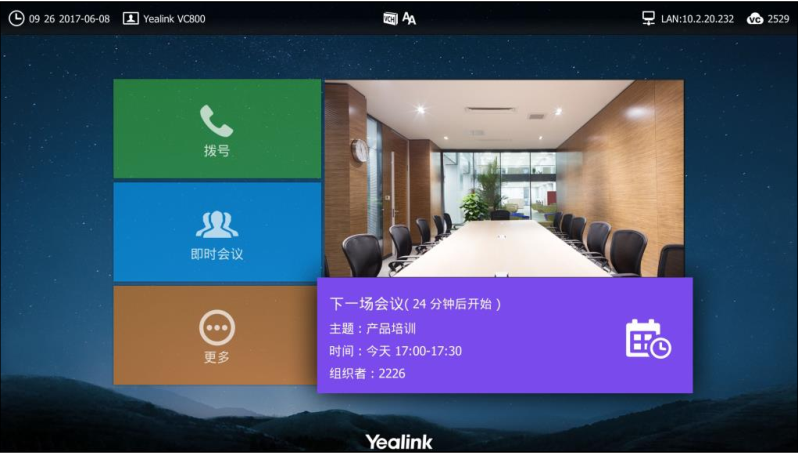 • 完美集成亿联视频会议终端,支持会议消息推送及一键入会