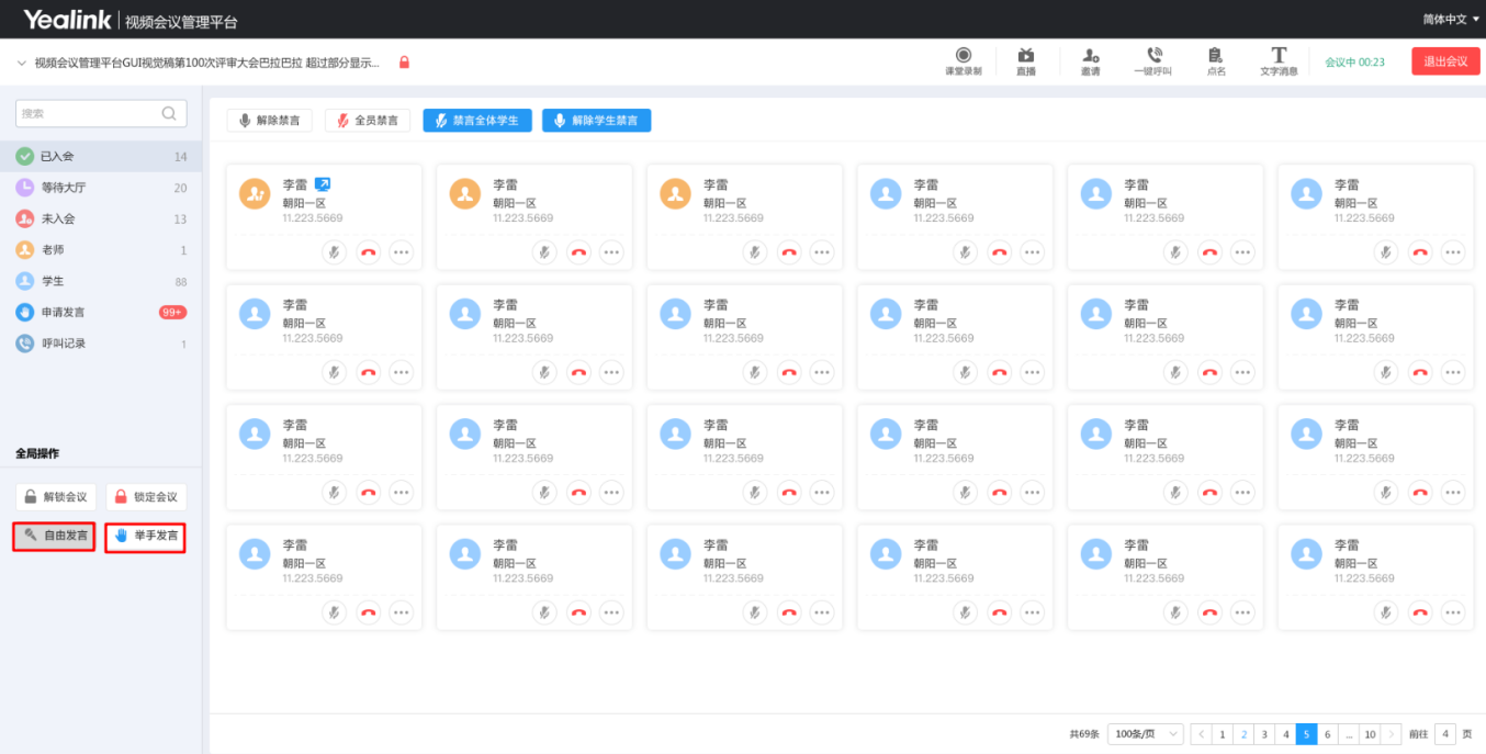 • 举手发言 / 自由发言,灵活切换;