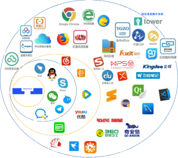 软件,商店已上架800多应用;与讯飞、金山、网易等300多家国内软件开发商达成合作;适配超过600款桌面商用软件;基于Wine技术,无缝迁移Windows常规应用。