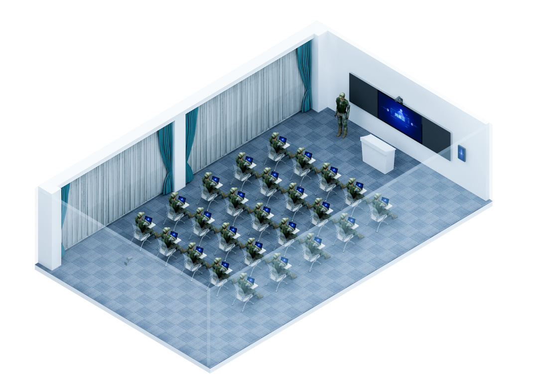 以智慧云眼录播为核心,实现录制、互动、直播、音频处理、显示等五大功能,部署简单、应用便捷、稳定性强。在营(连)俱乐部、班排宿舍学习室打造轻量级远程互动终端,打造思政教育新阵地。